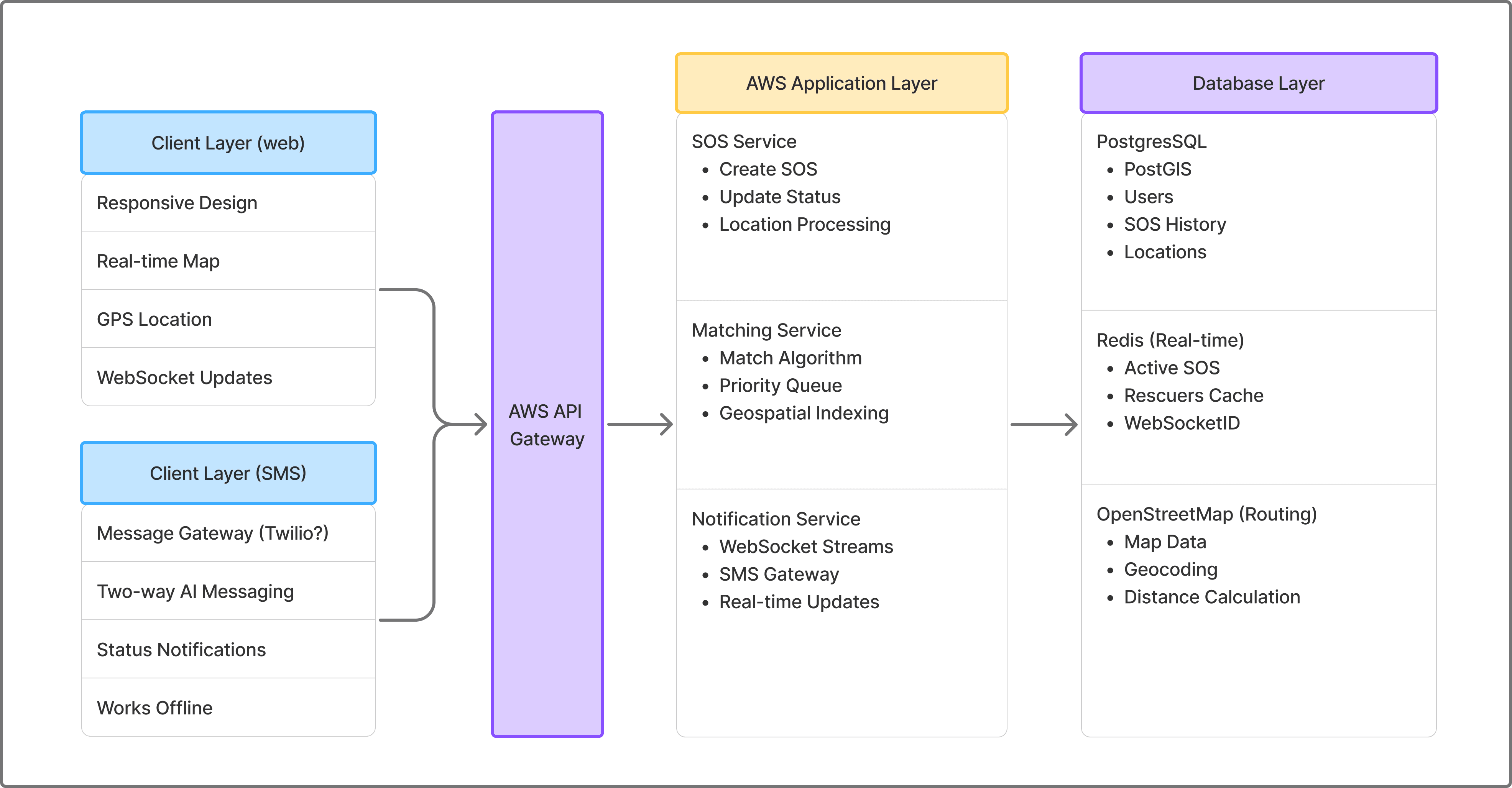 System capacity: Designed for 10,000 concurrent SOS requests per hour