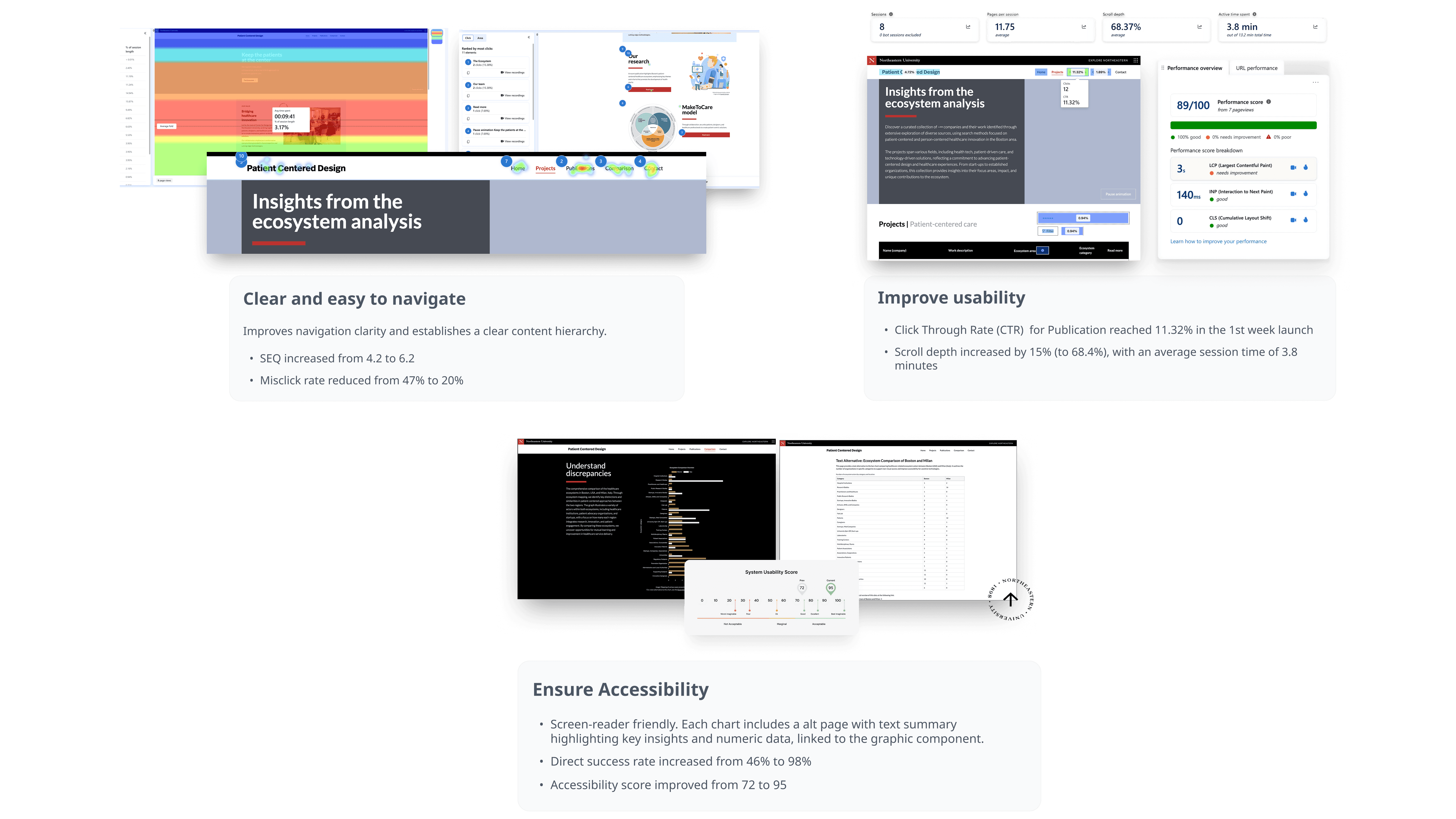 Since desktop is the primary access point for users, usability testing is centered on the desktop version. Microsoft Clarity and Web Core Vitals were used to track heatmaps, visit frequency, and active time spent.
